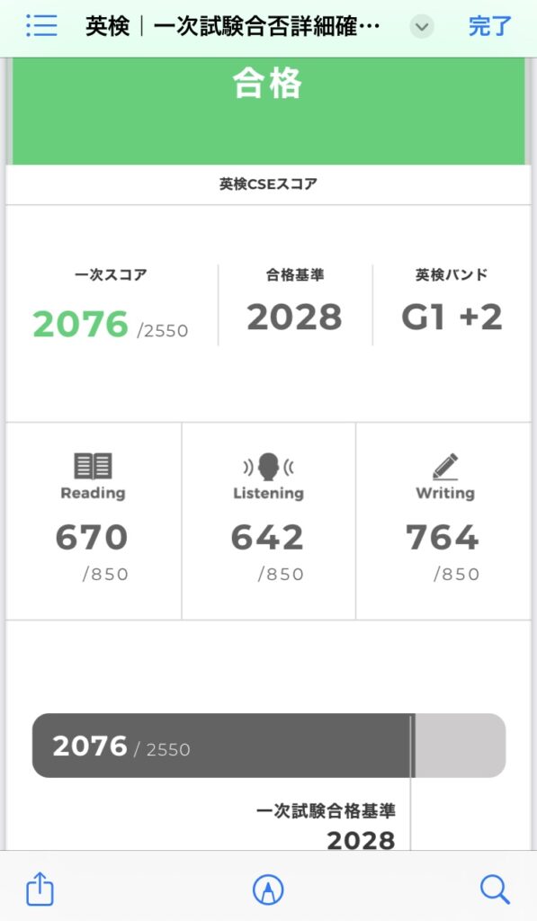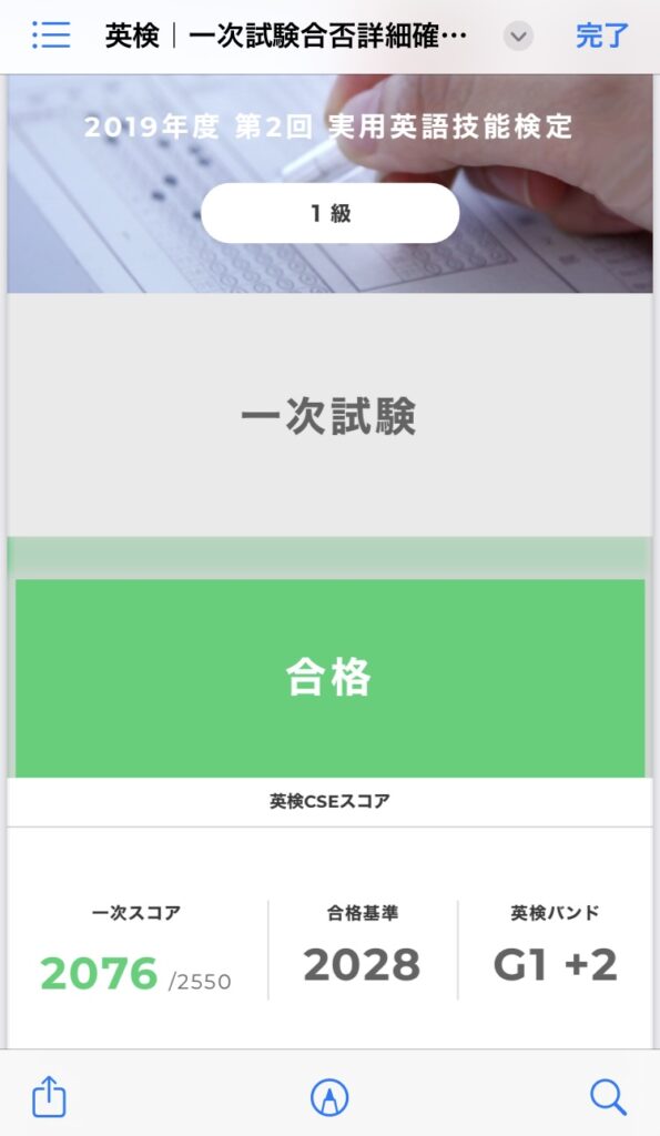 結果的に、2019年度第2回の英検1級一次試験を通過することができました。