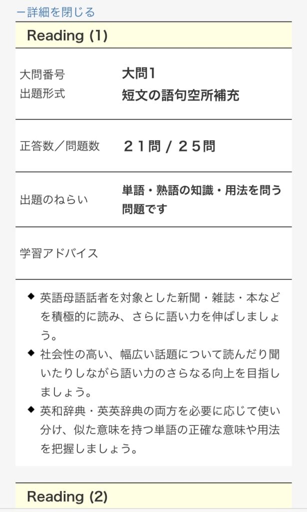 リーディングは決して高得点ではないが、致命傷にはならなかった